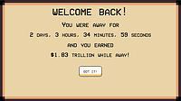 Hello everybody, I added offline progression into the game. You will now earn 20% of your production amount per second when you are offline! Cheers...